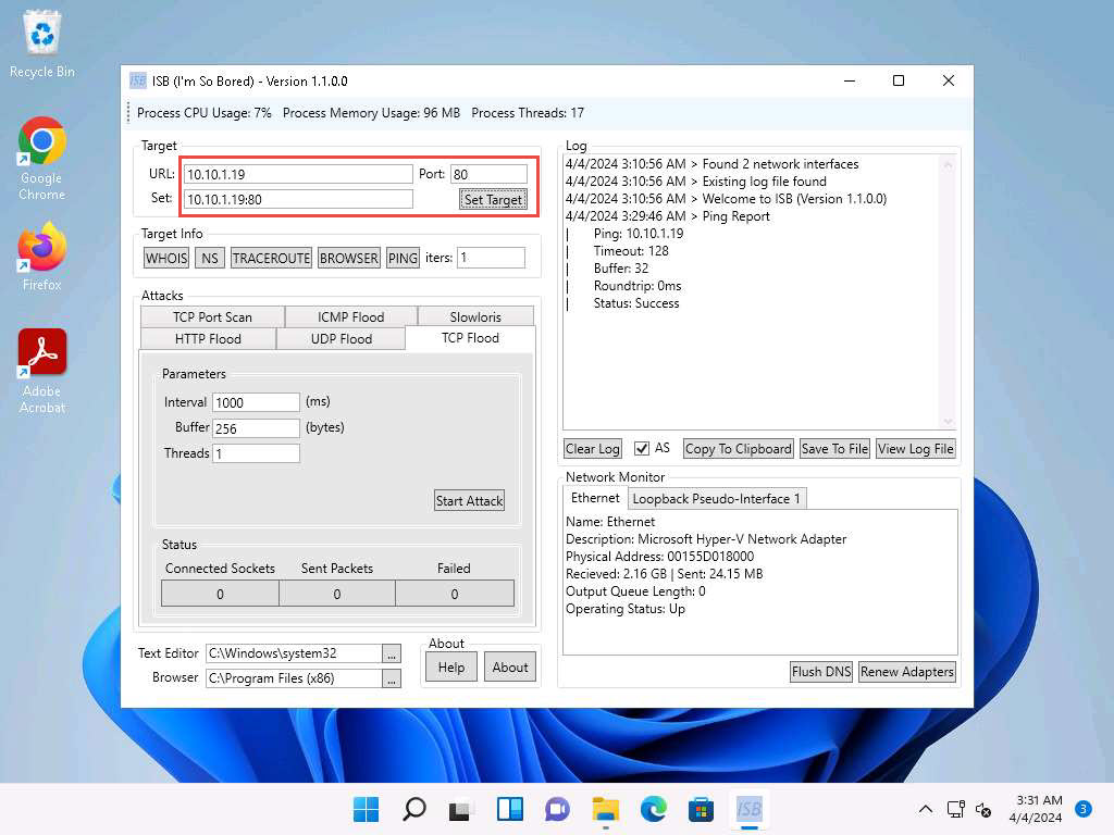 3. Perform a DOS attack using Rven-Storm