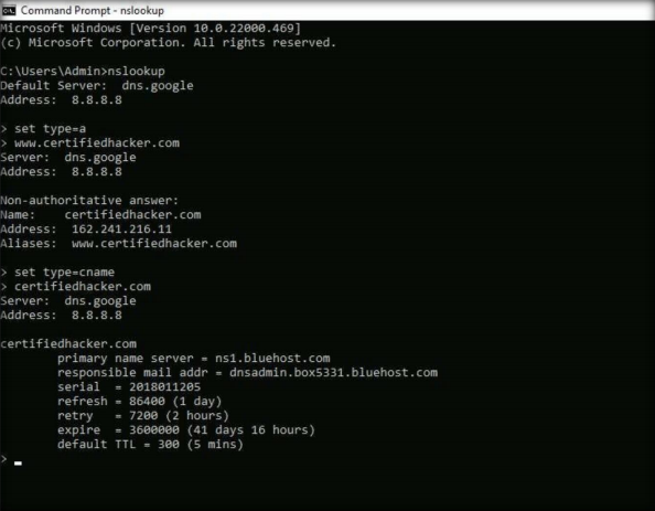 ## 1. Gather DNS Information using nslookup Command Line Utility and Online Tool