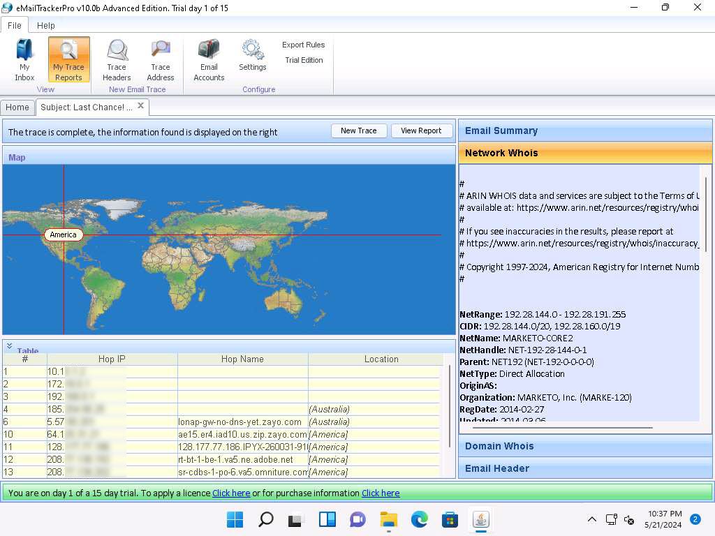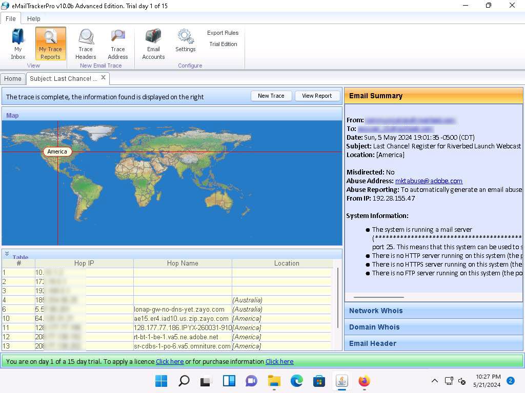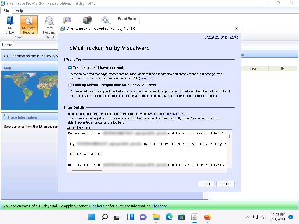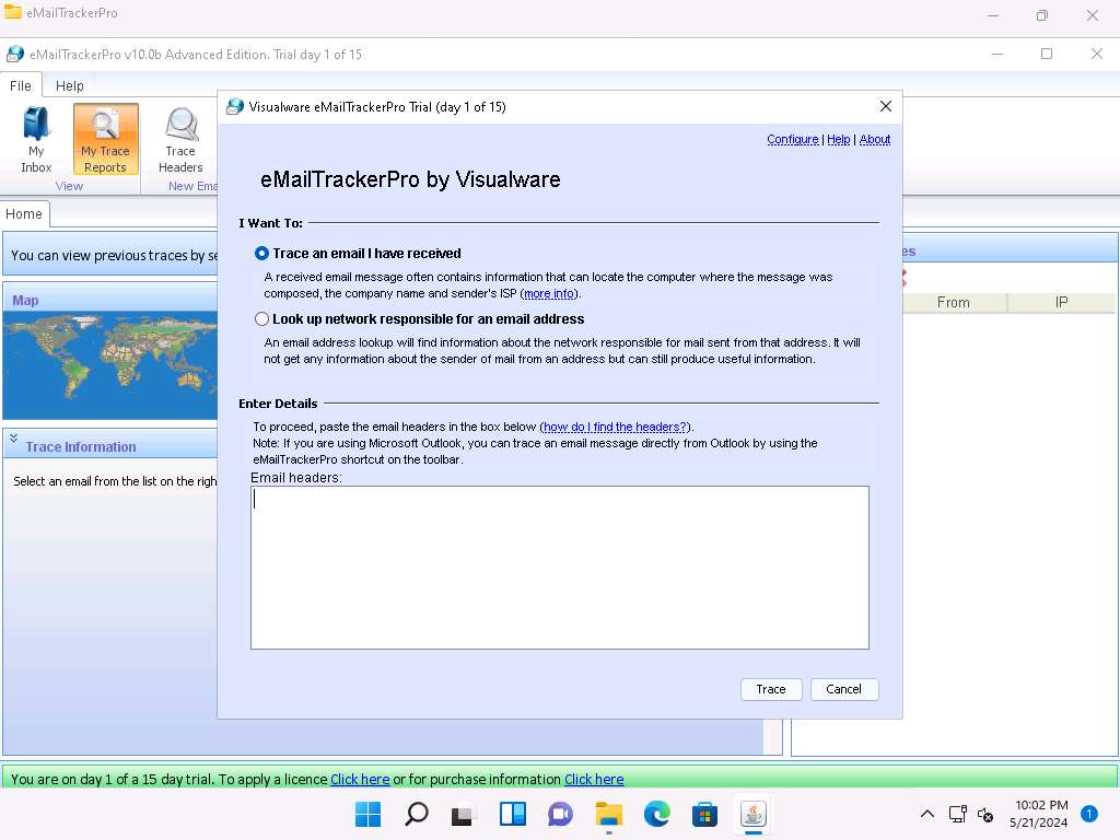 1. Gather Information about a Target by Tracing Emails using eMailTrackerPro