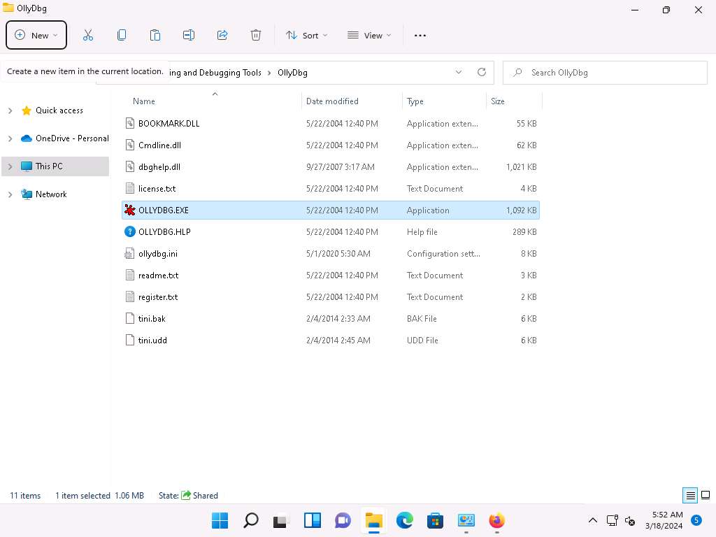 Screenshot The Load a new file window appears; by default, the Portable executable for 80386 (PE) [pe64.dll] option selected; click OK.