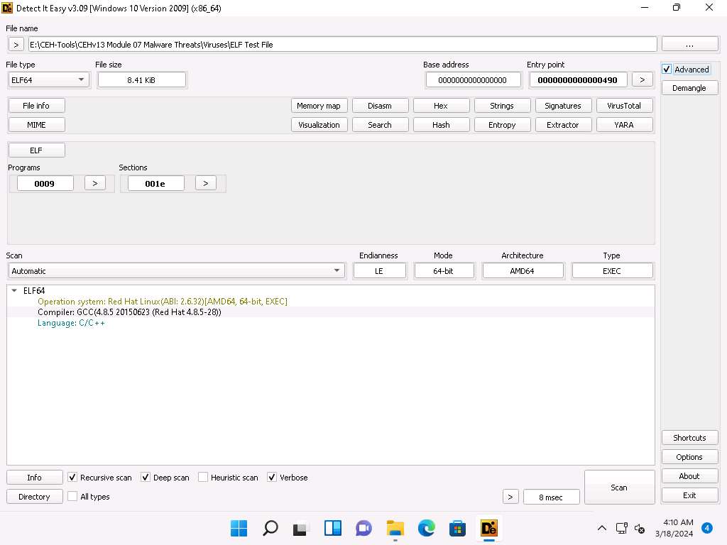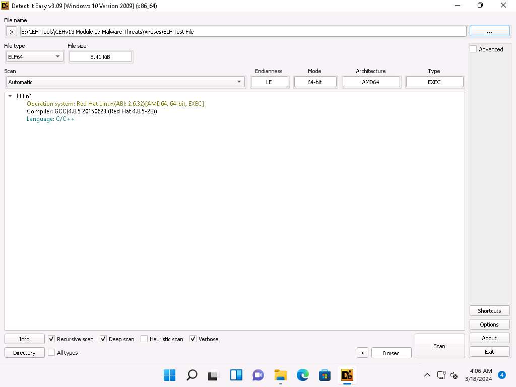 4. Analyze ELF executable with Detect it Easy (DIE)